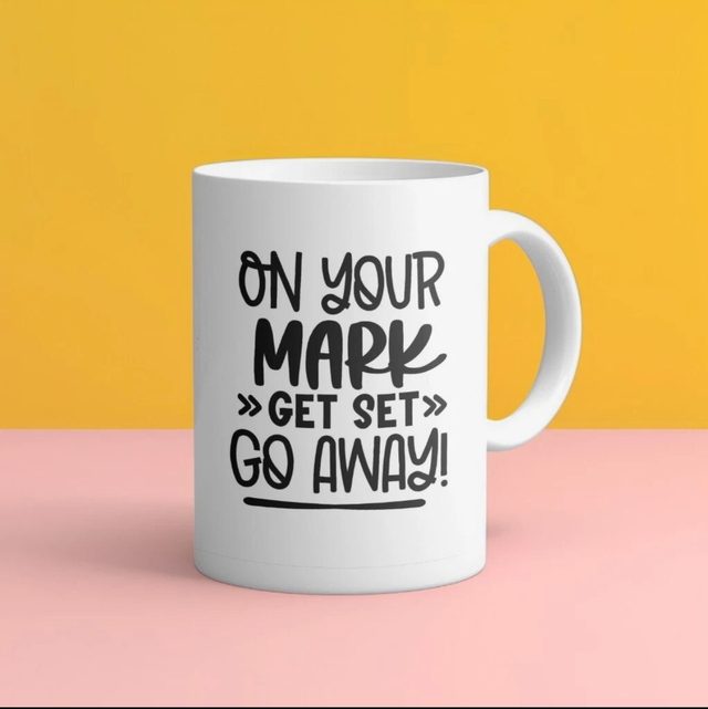 On Your Mark Get Set Go Away novelty 11oz Mug Gift Cup Funny Sarcasm birthday