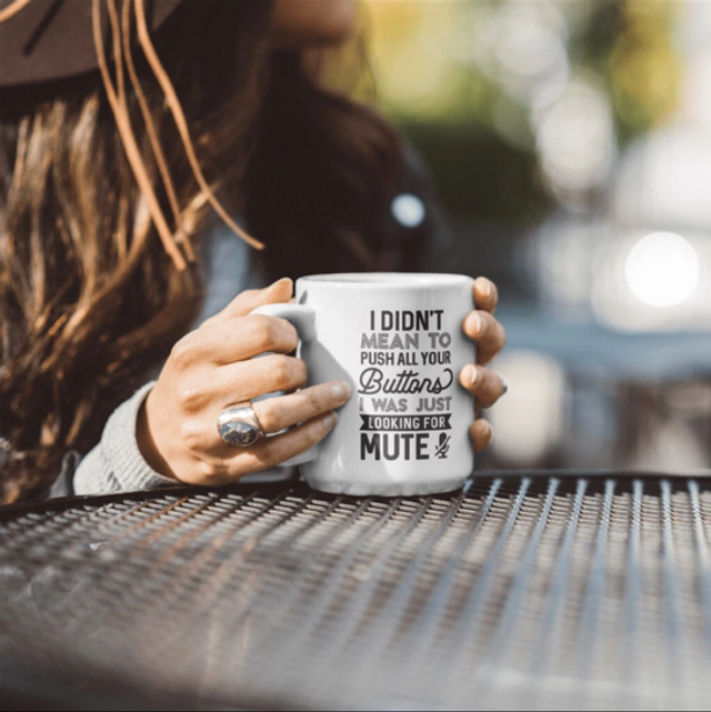 Push All Your Buttons Looking For Mute novelty 11oz Mug Gift Cup Fun Sarcasm