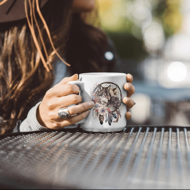 Wolf Dream Catcher Wiccan Pagan Pack Howl Nature 11oz Mug Cup gothic